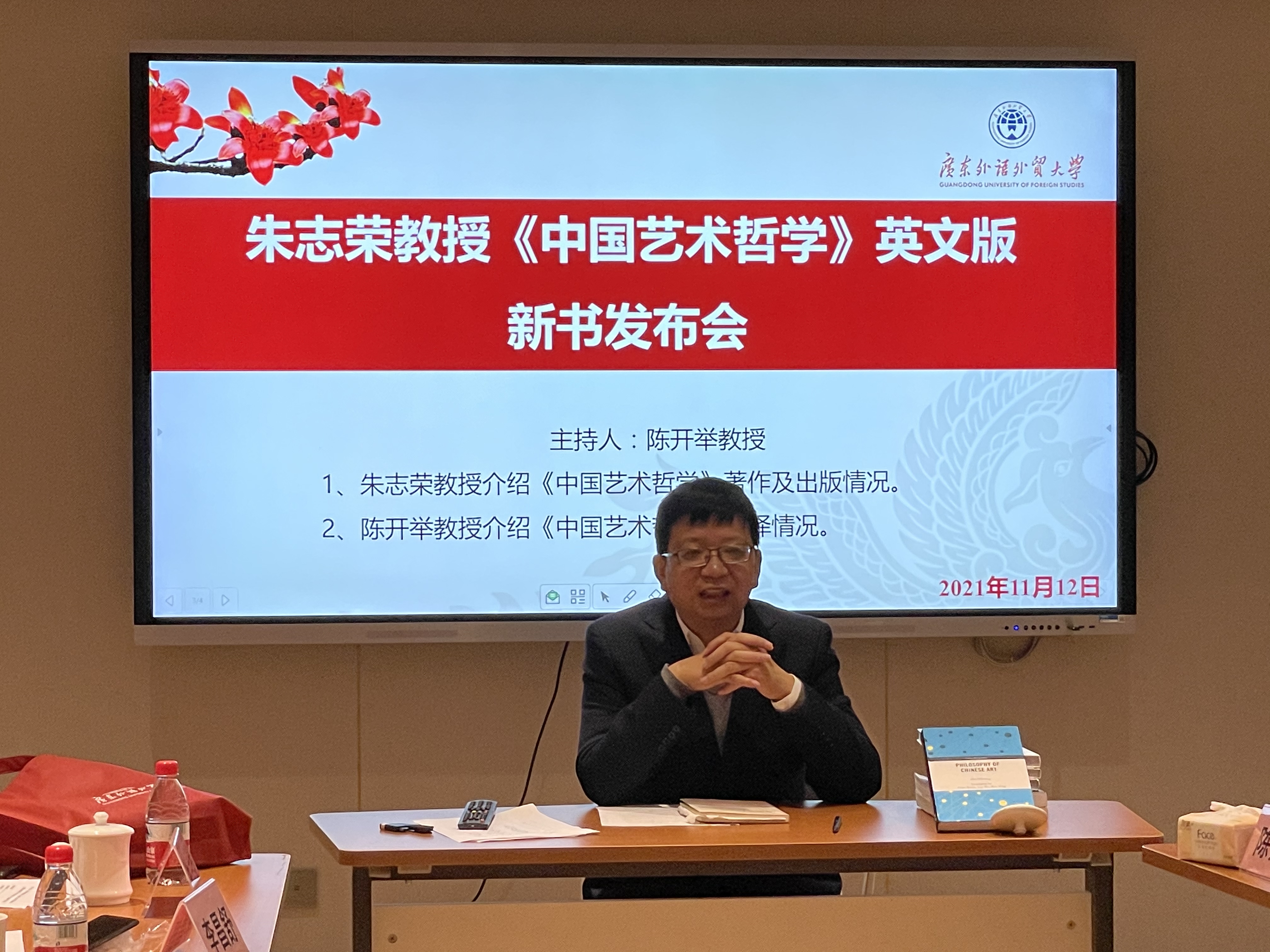 论坛设置两大主要议程。第一项议程为朱志荣教授《中国艺术哲学》英文版新书发布活动,由陈开举教授主持。朱志荣教授首先介绍了著作《中国艺术哲学》及其出版情况。朱教授回顾了自己的科研历程,讲到该著作创作并完成于他攻读硕士研究生阶段,这个颇具新意的选题为今后的科研之路奠定了坚实的基础。目前该著作已被译为德、法、日等多国语言,行销海内外,对中国艺术哲学的本土发展及海外传播,产生了深远影响。朱教授同时勉励与会的青年学子及研究人员,要保持对科研工作的热情和好奇心,珍惜时间,多做研究,做好研究,要时刻牢记为中国传统文化的发扬光大,发挥自己的应有之力。