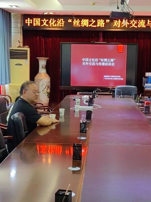 新疆乌鲁木齐位于丝绸之路经济带核心区,为加强一带一路沿线地区文化交流与传播,广东外语外贸大学阐释学研究院与新疆财经大学国际经贸学院就 “中国文化沿“丝绸之路’的对外交流与传播”开展主题座谈会,座谈会主要内容为:丝绸之路与中外文明互鉴、中国文化对外交流与传播、中国-中亚文化交流等。
