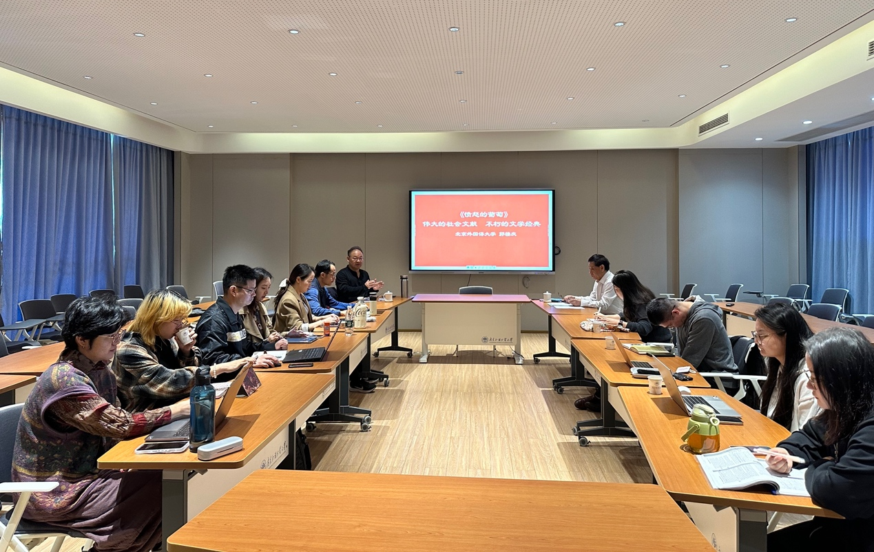 2024年11月24日上午,北京外国语大学研究生教育督导、世界亚洲研究信息中心副主任、《亚洲研究动态》主编、英语学院教授、博士生导师郭棲庆教郭棲庆东外语外贸大学阐释学研究院邀请,在科研楼一楼演播厅作外国文学系列讲座第二讲。讲座由阐释学研究院院长陈开举教授主持,吸引了众多师生前来聆听。